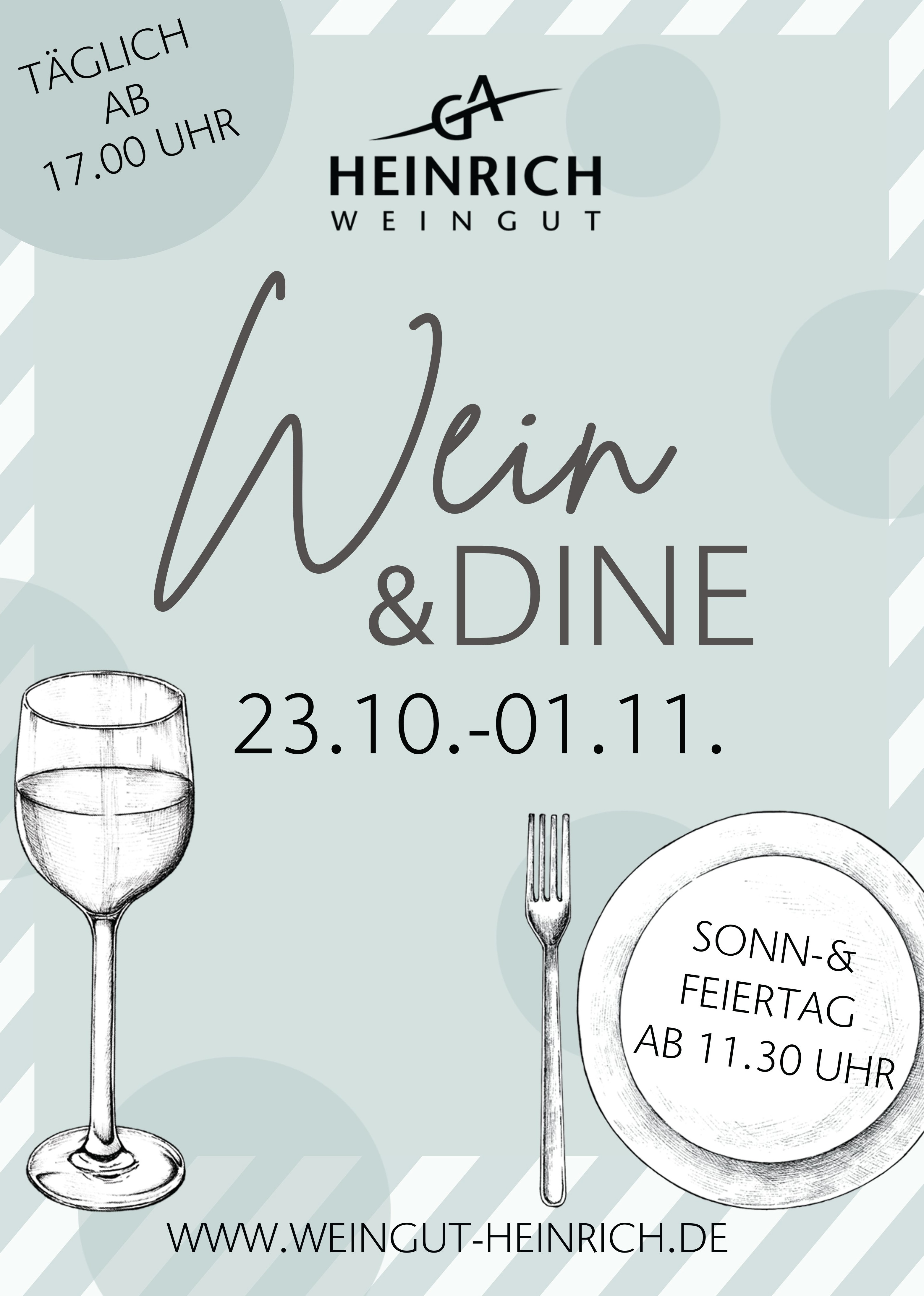 Nach den tollen Rückmeldungen im letzten Jahr öffnen wir wieder die Türe unseres ehemaligen Lokals "Zur Baumkelter", zum "Wein & Dine". Zu unseren Weinen servieren wir schwäbische Wirtshaus- und Besenklassiker wie Rostbraten, Tellerschnitzel, Maultaschenvariationen und Vielfältiges aus der regionalen Küche. Auch vegetarische Kreationen sind wieder mit dabei und Omas Kartoffelsalat gibt es natürlich auch!